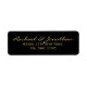 Elegant Gold and Black Wedding Return Address Label featuring name in gold calligraphy font and address in modern font style.