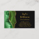 This elegant and glamorous business card features a dark green agate marble background with faux gold glitter accents. The text combines handwritten script and modern sans serif fonts for a classy and sophisticated look. The sequins and glitter texture creates the perfect blend of chic and grunge.