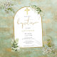 Featuring delicate watercolor greenery leaves and an elegant gold arch and crucifix, this chic gender-neutral baptism transparent acrylic invitation can be personalized with your special information. Designed by Thisisnotme©