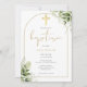 Elegant Gold Arch Greenery Floral Foliage Baptism Invitation