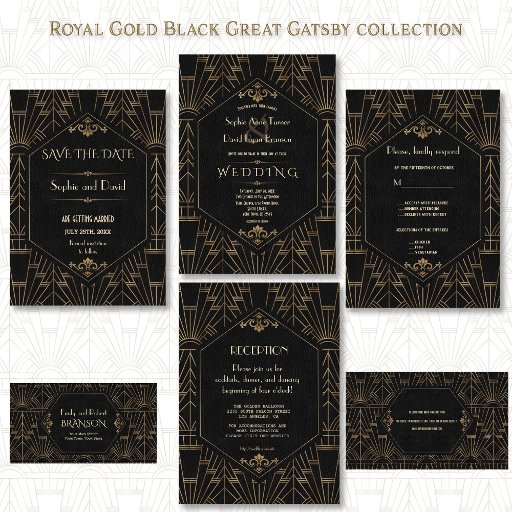 Vintage Gold Black Art Deco Great Gatsby design. It features a Great Gatsby art deco style, a Roaring 1920's old Hollywood, with faux gold foil Fleur-de-lis overlay! Use Customize tool to add your information. For more, visit please, my Royal Gold Black Great Gatsby Collection.