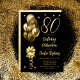 Elegant Gold Balloons on Black 80th Birthday Party Invitation