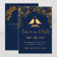 Elegant Gold Birds Navy Blue Floral Pattern Save The Date
