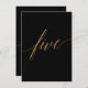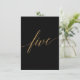 This elegant gold and black calligraphy table number five is perfect for a simple wedding. The neutral design features a minimalist card decorated with romantic and whimsical faux gold foil typography. The card prints on the front and back (double-sided). Other table numbers in the collection are sold separately.