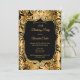 Elegant Gold Black Damask Jewel Bow Birthday Invitation