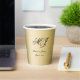These elegant custom wedding paper cups feature a elegant black calligraphy for your names and wedding date to personalize on a faux gold background. Best of wishes for your wedding and marriage! Designed by Susan Coffey.