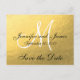 Elegant Gold Black Save the Date postcard. Elke Clarke© for MonogramGallery at Zazzle. Modern, simple wedding announcement with printed gold foil photo effect. A white monogram initial in script typography with black text overlay. Fully customizable. Other colors and background effects available.