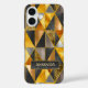 Elegant gold black silver geometric triangles chic iPhone 16 Case. To make it extra special, it is also monogrammed with name or initials or any text, click the "customize further" link and use the design tool to modify the design if you like.
