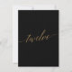 This elegant gold and black table twelve table number is perfect for a simple wedding. The neutral design features a minimalist card decorated with romantic and whimsical faux gold foil typography. The card prints on the front and back (double-sided). Other table numbers in the collection are sold separately.