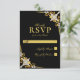 Luxurious chic Black and Gold Wedding RSVP Card with calligraphy script and gold jewel accent design.