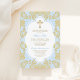 Elegant Gold Blue Damask Baby Boy Baptism Invitation