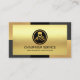A faux gold layer is encapsulated by a grey borders with bronze tab corners. The gold layer has a chauffeur's logo at the top you can use. Just below this is the business name and a slogan caption option. ; You can change the caption remarks to the slogan to suit your own service needs.