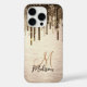 Elegant gold brown drips glitter monogram Case-Mate iPhone case