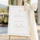 Celebrate your child’s special day with this timeless Elegant Gold Script Baptism Welcome Foam Board Sign. Featuring delicate typography, minimalist design, and a soft gold cross accent, this sign brings a touch of grace and sophistication to your celebration.