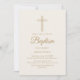 Elegant Gold Calligraphy Cream Cross Baptism Invitation