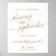 This elegant gold calligraphy Dancing in September sign is perfect for a fall wedding. The neutral design features a minimalist poster decorated with romantic and whimsical faux gold foil typography. The sign reads "Do you remember? Dancing in September after tonight we sure hope you do!".