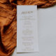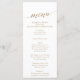 This elegant gold calligraphy dinner menu card is perfect for a simple wedding. The neutral design features a minimalist card decorated with romantic and whimsical faux gold foil typography. This menu can be used for a wedding reception, rehearsal dinner, or any event.