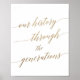This elegant gold calligraphy generations sign is perfect for a simple wedding. The neutral design features a minimalist poster decorated with romantic and whimsical faux gold foil typography. The sign reads "our history through the generations".