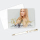 Add a touch of sparkle to your gratitude with this gorgeous graduation thank you card. Flowing faux gold foil calligraphy overlays your full-bleed senior portrait with your name, school, and class year in clean black type below. Customize the photo and text for a glamorous card that captures the look of gold without the foil price tag.