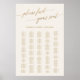 This elegant gold calligraphy ivory (200+) seating chart poster is perfect for an elegant wedding. The design features romantic and whimsical faux gold foil typography. This sign can be used to organize your guests alphabetically or by table number. This wedding poster includes enough room for up to about 210 guests. Make room for more (or less) guests by clicking the "customize" button and decrease or increase the size of the font. In addition to the placement of each guest, personalize this sign with the names of the bride and groom and the wedding date.