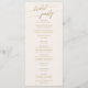 This elegant gold calligraphy ivory wedding program is perfect for a simple wedding. The neutral design features a minimalist card decorated with romantic and whimsical faux gold foil typography. Include the name of the bride and groom, the wedding date and location, thank you message, order of service, bridal party and an optional "in loving memory" memorial.