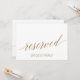 This elegant gold calligraphy "reserved" sign is perfect for a simple wedding. The card is double sided (prints on both sides). The neutral design features a minimalist card decorated with romantic and whimsical faux gold foil typography. Use these cards to reserve chairs or tables at your wedding ceremony, reception or any event.