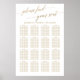 This elegant gold calligraphy seating chart poster is perfect for a simple wedding. The neutral design features a minimalist sign decorated with romantic and whimsical faux gold foil typography. This wedding poster includes enough room for up to 16 tables (160 guests). In addition to the placement of each guest, personalize this sign with the names of the bride and groom and the wedding date. This seating chart can be used for a wedding reception or any special event.
