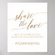 This elegant gold calligraphy "share the love" sign is perfect for a simple wedding. The neutral design features a minimalist poster decorated with romantic and whimsical faux gold foil typography. Personalize the sign with your wedding hashtag.