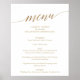 This simple gold calligraphy wedding menu sign is perfect for a simple wedding. The neutral design features a minimalist poster decorated with romantic and whimsical faux gold foil typography. Personalize the sign with your menu options, names, wedding date and location.