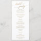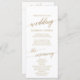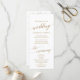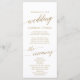 This elegant gold calligraphy wedding program is perfect for a simple wedding. The neutral design features a minimalist card decorated with romantic and whimsical faux gold foil typography. Include the name of the bride and groom, the wedding date and location, thank you message, order of service, bridal party and an optional "in loving memory" memorial.