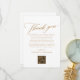 Elegant Gold Calligraphy Wedding Reception Table Thank You Card with QR Code and Personalized Text... A simple yet elegant card of thanks to adorn the plates on your reception tables. Simply revise the "placeholder" text with your own messages and change the QR code graphic by typing in your wedding website URL. All text except the calligraphy elements can be easily revised on the personalization template.