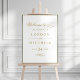 Greet your guests with this elegant gold calligraphy "Welcome to the Wedding of" sign featuring graceful swash flourishes. The refined typography showcases the couple's names and wedding date in a clean, classic layout on white. A stunning easel display for your ceremony or reception entrance. All text is fully customizable.