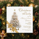 Elegant Gold Christmas Tree & Bow Holiday Party Invitation