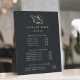 Elegant plaque with easel displays your salon services or price list in classic white lettering on a rich soft black background adorned with a tropical faux gold foil conch shell illustration. Includes three customizable headings and body text fields. To adjust layout, enter your text and then use the Customize function to change positioning and font sizes.