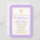Having your Elegant Gold Cross Violet First Communion Invitation match the theme of your party is a great detail that your guests will appreciate. The thoughtfulness of a consistent party theme is often appreciated and can show your guests that you can host a cohesive event.
