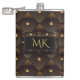 Elegant Gold Crown Faux Brown Leather Monogram Flask