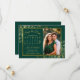 These beautiful save the date cards will let your friends and family know about your upcoming wedding. They feature an elegant emerald green and gold design with your photo in a golden faux foil frame and delicate curls & swirls in the corners. There is space for a customizable calendar of your wedding month with a heart around your special day. Fancy, stylish, posh, and glam, these cards are a wonderful way to start your wedding journey with class and style.
