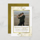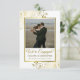 These beautiful engagement announcement cards are a wonderful way to let your friends and family know that you'll be tying the knot. The elegant gold and white design features your photo in a faux foil golden frame surrounded by ornate golden curls and swirls. The title reads "We're Engaged!" with space for your names and a short note. The back is a deep marbled gold color.
