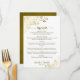 This beautiful wedding menu is simple, elegant, sophisticated and stylish. It features a beautiful design with lacy gold script calligraphy and delicate golden curls and swirls in the corners. The back is a beautiful marbled gold color.