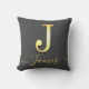 Elegant Gold Custom Monogram J Name Throw Pillow