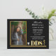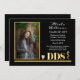 Classy and elegant one photo gold text "DDS" (Doctor of Dental Surgery) Staff of Asclepius dentist graduation announcement design by Holiday Hearts Designs (rights reserved). Placeholder template photo courtesy Unsplash.