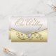 Plain white envelopes are included with paper invitations and will come to fit the invitation size you select. If you don’t need the envelopes, you may choose to not receive them by selecting the dropdown below "Envelopes" and choosing "None." If you’d like to have a design on your envelopes, you can browse all of these available envelopes to find the design that complements your Elegant Gold Diamond Swirl Wedding Invitation.