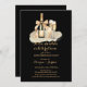 Celebrate a milestone in style with this elegant jointed birthday party invitation, perfect for both family gatherings and formal party. Featuring a black background and a refined graphic of a champagne bottle tied with a bow alongside two glasses, this design radiates sophistication and warmth. The heartfelt script message “It's a double celebration” sets the tone for an evening full of appreciation and good company. All party details are neatly presented in a classic serif font, making them easy to read and customize. On the back, the same graceful design continues with the thoughtful phrase “We hope to see you!”