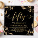 Elegant Gold Fifty Script Black 50th Birthday Invitation