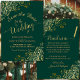 These beautiful save the date cards will let your friends and family know about your upcoming wedding. They feature an elegant emerald green and gold design with ornate frills in the corners and fancy script calligraphy reading Save the Date with the names of the couple, wedding date and location. The back has a cute "pencil us in" graphic with space for a note that can include a website where your guests can go for more information.