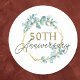 Elegant Gold Floral 50th Wedding Anniversary Classic Round Sticker