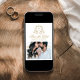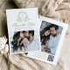 Make a lasting impression with this elegant gold photo save the date card. The front features your custom monogram initials framed by a gold floral crest on a white background. Your names are displayed in sophisticated gold calligraphy, followed by your wedding date and location. A horizontal engagement photo beneath adds a personal touch to your announcement. The back of the card highlights a vertical engagement photo along with a scannable QR code, allowing guests to easily access your wedding website and custom details. A refined and stylish choice for modern, formal, or classic wedding celebrations.