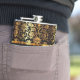 Flask. Featured an Elegant Gold Floral Damask and Black Design - 📌If you need further customization, please click the "Click to Customize further" or "Customize or Edit Design"button and use our design tool to resize, rotate, change text color, add text and so much more.⭐This Product is 100% Customizable. Graphics and / or text can be added, deleted, moved, resized, changed around, rotated, etc... ⭐99% of my designs in my store are done in layers. This makes it easy for you to resize and move the graphics and text around so that it will fit each product perfectly. 📌 (Please be sure to resize or move graphics if needed before ordering) You can also "TRANSFER DESIGN" on other Zazzle products and adjust the design to fit most of Zazzle items. (button is down on the right side of the page) This design is made with high resolution vector and/or digital graphics for a professional print. 📌NOTE: (THIS IS A PRINT. All Zazzle product designs are "prints" unless otherwise stated under "About This Product" on the left side of this page) The design will be printed "EXACTLY" like you see it on the screen and on the product...so please make sure when you do your changes on the resizing of any of the graphics or text that it fits in the areas correctly and that your spelling and wording is how you like it to be in size, color and font. If you have any questions about the "DESIGN ONLY" or need help please contact me at ✉ siggyscott@comcast.net or visit my store link: https://www.zazzle.com/store/designsbydonnasiggy (Copy and Paste) I'll be happy to help. 📌 ALL OTHER QUESTIONS (shipping, refund, the printing, the product, etc...) please contact Zazzle or the Maker ⭐DIRECTLY⭐. Thank you for the support and stopping by my store - DesignsbyDonnaSiggy. © Donna Siegrist⭐⭐⭐ ZAZZLE promises 100% satisfaction. If you don't absolutely love it, Zazzle will take it back! ⭐⭐⭐ 1-888-8ZAZZLE (1-888-892-9953) Phone hours: Mon - Fri: 9AM - 5PM PT (12PM - 8PM ET)