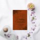 This elegant wedding invitation features real foil printing on a marbled rust orange or burnt umber colored background. The beautiful design has fancy script lettering with ornate floral curls and swirls in the corners. Stylish, elegant, sophisticated, and chic, this invitation is fancy and glam. Wonderful and classy way to invite your friends and family to share in your joy on your special day.