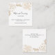 Elegant white and gold square business card with fine floral line drawing on both sides. The design is lettered with handwritten script and modern typography in black on white. The template is set up for you to add your name, profession, services and business contact details.